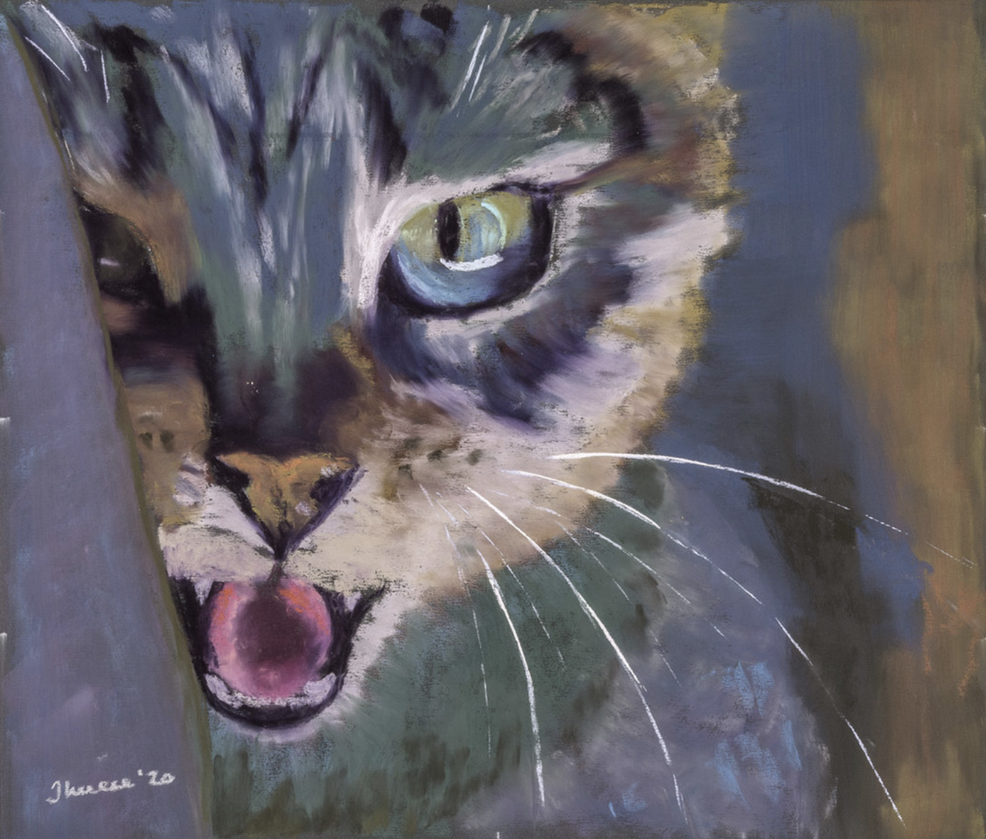 Lucille Oct 17 Written By Therese Melden Therese Melden theresemeldenart@gmail.comLucilleLucille is a Professional Assassin.Pastel 2020 18.5Wx16H NFS Therese Melden